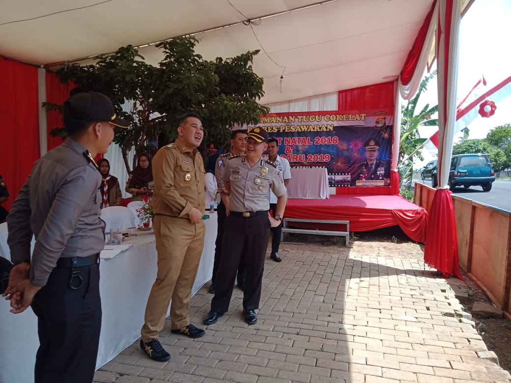 PESAWARAN-(PeNa), Jelang pergantian malam Tahun Baru 2019,beberapa titik Pos Keamanan yang didirikan kepolisian dikunjungi Bupati Pesawaran Dendi Ramadhona, Senin (31/12).