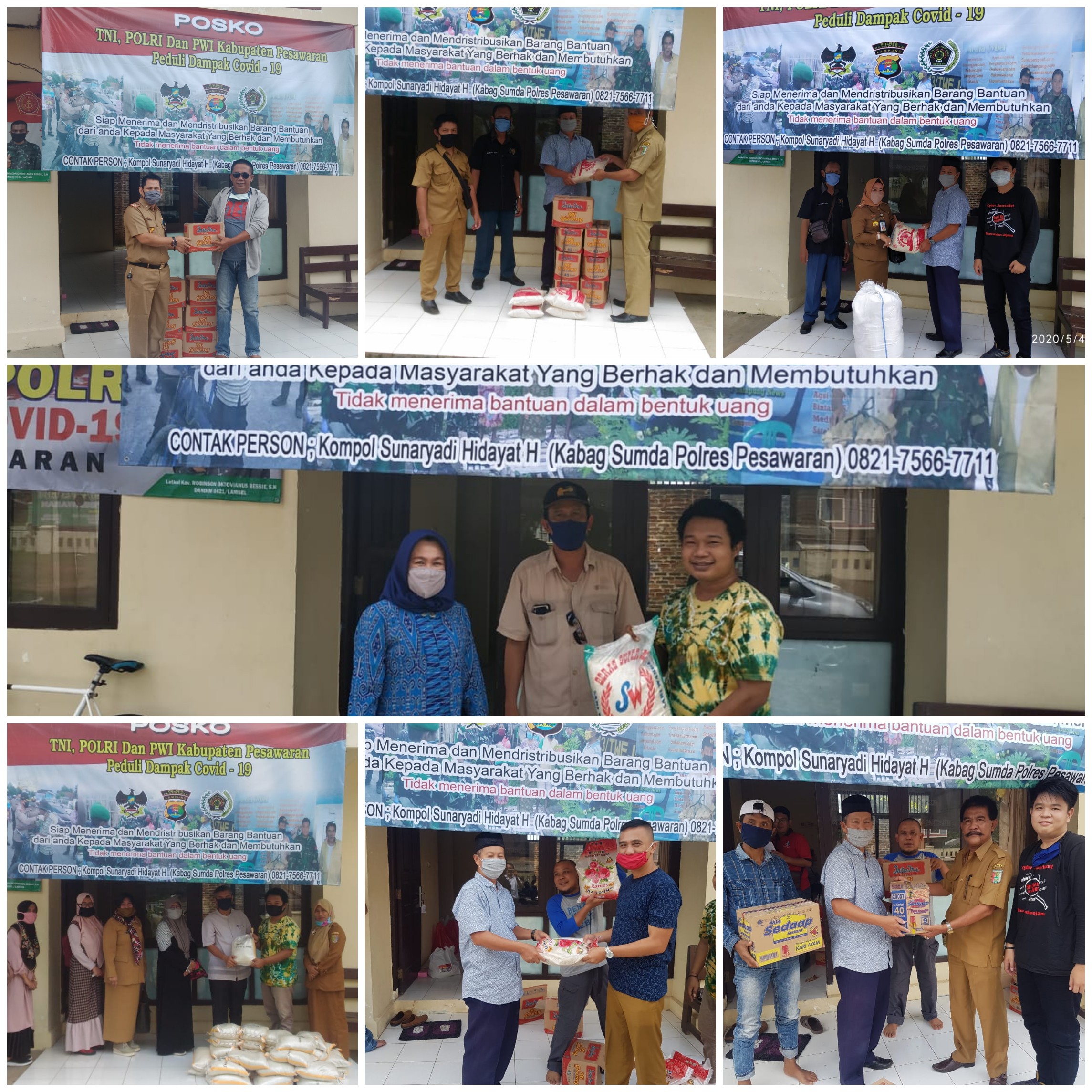 PESAWARAN-(PeNa), Posko TNI,Polri dan PWI Kabupaten Pesawaran siap distribusikan ratusan paket sembako kepada yang berhak menerimanya di tiga kecamatan. Demikian dikemukakan Kapolres AKBP Popon Ardianto Sunggoro diruang kerjanya, Senin (04/05/2020).
