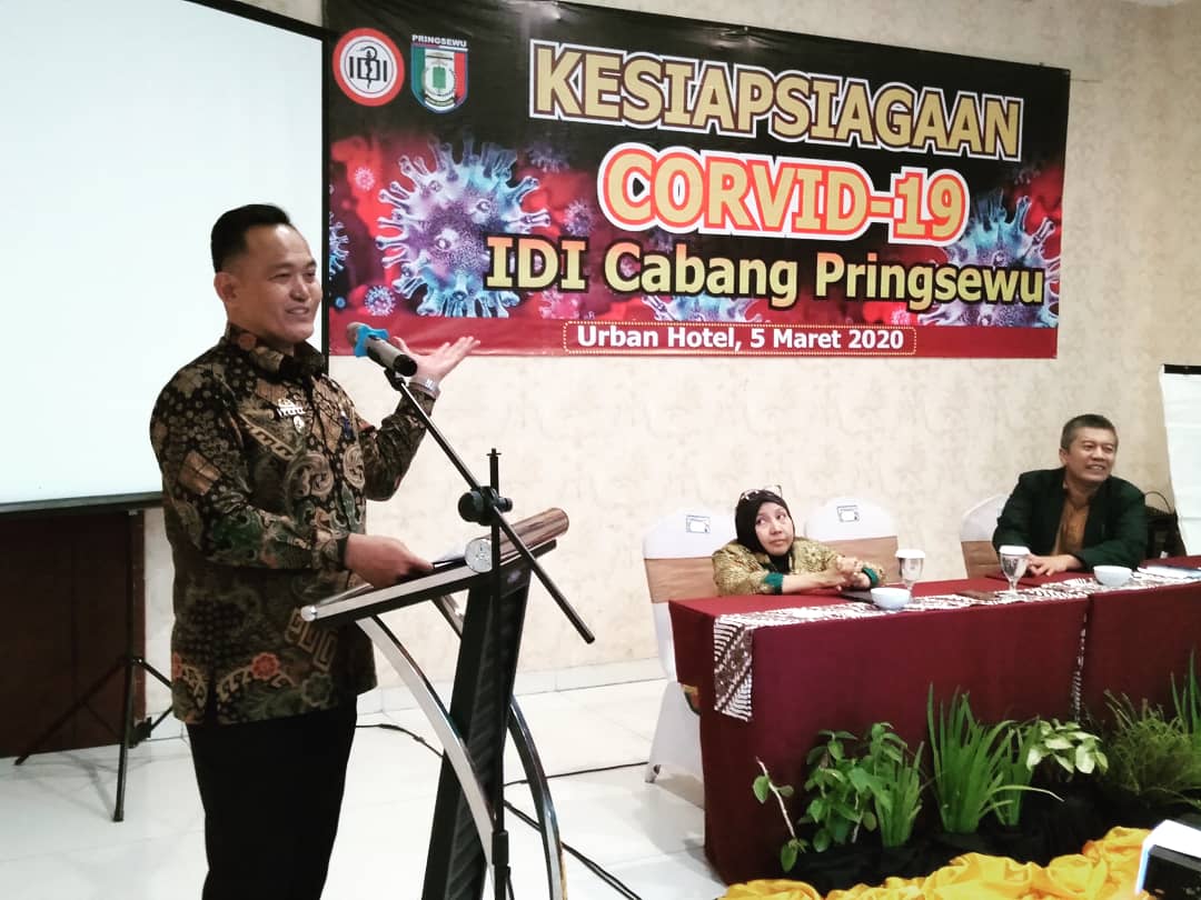 Kegiatan tersebut dilakukan Ikatan Dokter Indonesia (IDI) Cabang Kabupaten Pringsewu guna menyikapi penyebaran virus Corona (Corvid-19) yang semakin meluas.