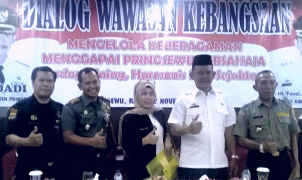 Upaya tersebut dilakukan dengan cara terus menanamkan kandungan butir pancasila kepada anak bangsa. Gagasan di Bumi Jejama Secancanan ini pun dikemukakan Wakil Bupati Pringsewu, Fauzi pada saat Dialog Wawasan Kebangsaan, Rabu (22/11), di Hotel Regency, Gadingrejo, Pringsewu.”Rencananya pada 2018 pemda menganggarkan untuk Kampung Pancasila. Ini hasil urun rembuk dengan Kesbangpol dan Dinas Pemberdayaan Masyarakat dan Pekon (DPMP) soal bagaimana tercipta suasana kerukunan hidup di suatu kampung,” kata Fauzi.