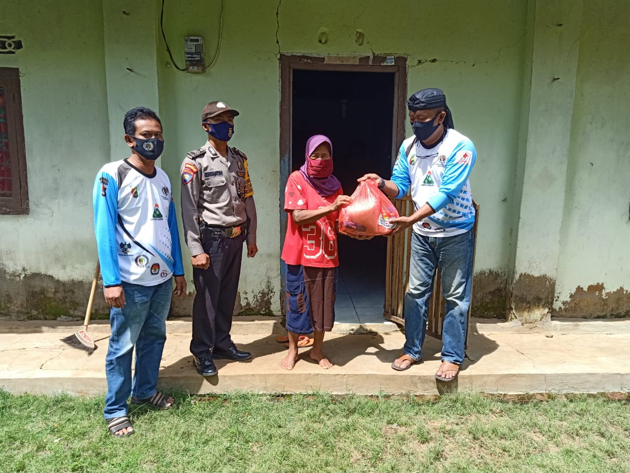 PESAWARAN-(PeNa), Persatuan Wartawan Indonesia (PWI) Kabupaten Pesawaran bersama Bhabinkamtibmas membagikan 232 paket sembako di Kecamatan Tegineneng dan Negeri Katon, Kamis (21/05/2020).
