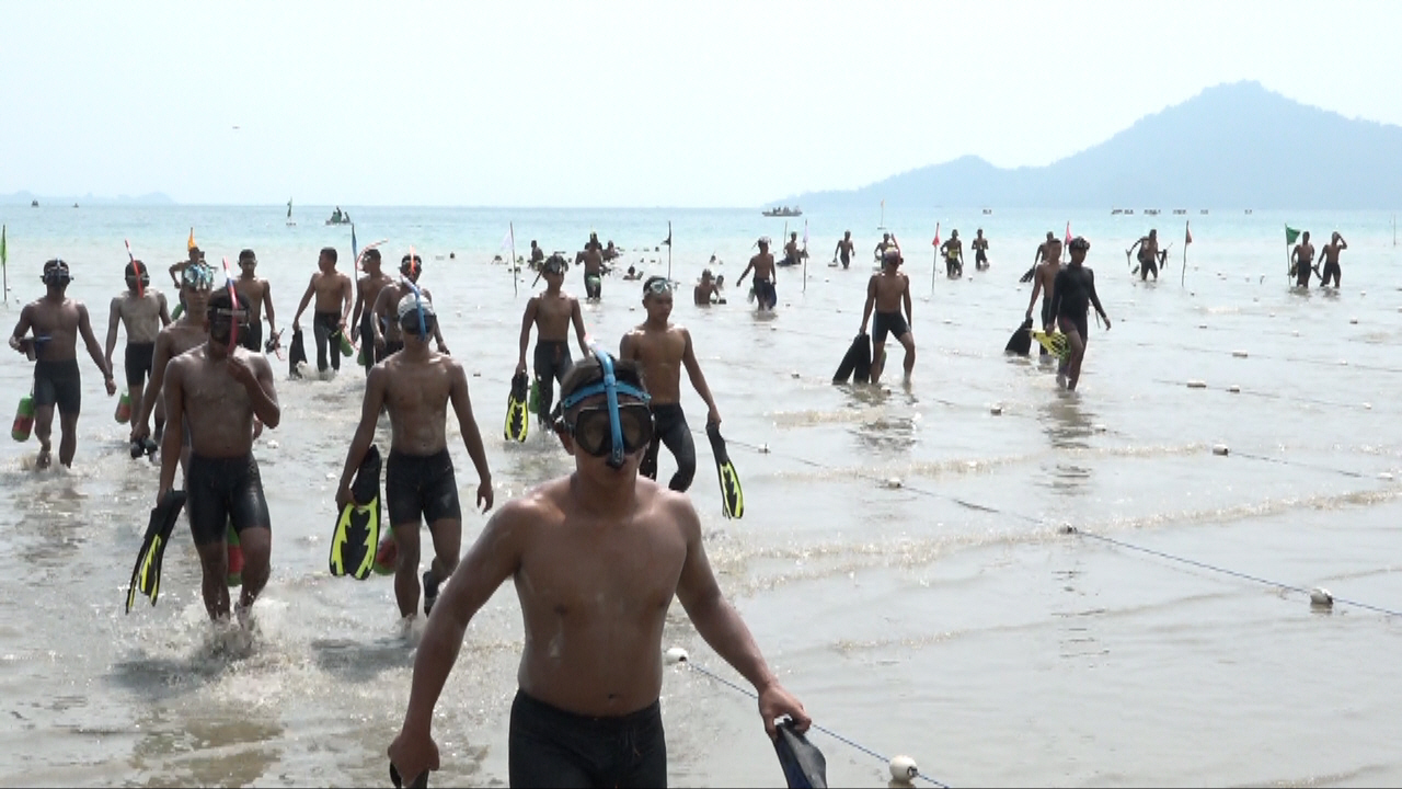 Peserta kemudian berenang menuju ke tengah laut, dengan jalur yang telah ditentukan sejauh 5 km, dan akan kembali k titik finish melalaui lintasan yang berbeda yang juga berada di bibir pantai marines eco park.