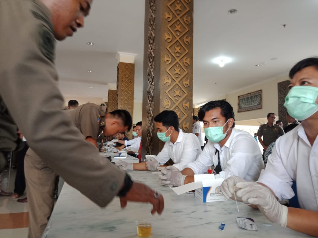 Diterangkan, personil Sat Pol PP yang dilakukan tes urin memang tidak seluruhnya karena ada yang masih menjalankan tugas dibeberapa dinas maupun kecamatan. “Yang mengikuti tes urin untuk ASNnya ada 35 orang dan 600 tenaga honor. Memang tidak bisa dilakukan kepada seluruh anggota secara bersamaan karena ada beberapa personil yang masih bertugas, ” terang dia.
