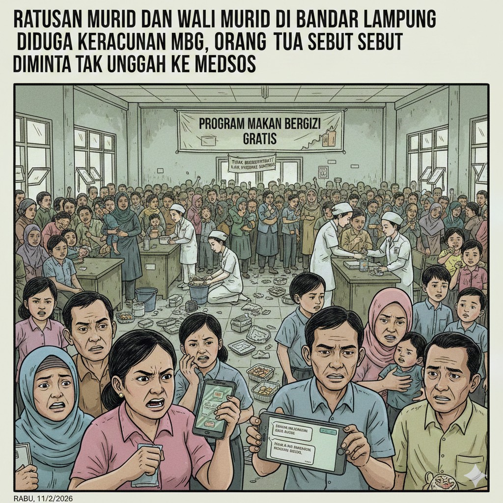 BANDARLAMPUNG – (PeNa), Ratusan murid, guru hingga wali murid di Kota Bandar Lampung diduga mengalami keracunan usai menyantap menu Program Makan Bergizi Gratis (MBG), Rabu (11/2/2026). Korban mengalami diare, mual, muntah hingga demam beberapa jam setelah makan.