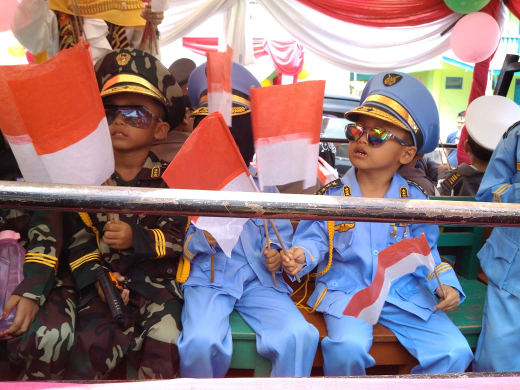 PRINGSEWU-(PeNa), Ribuan warga Kecamatan Pringsewu ikuti pawai budaya menyemarakkan peringatan HUT ke-74 Kemerdekaan Republik Indonesia di Lapangan Kuncup, Kelurahan Pringsewu Barat, Kecamatan Pringsewu, Ahad (25/08/2019).
