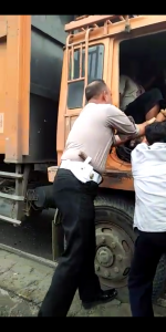 PESAWARAN-(PeNa), Diduga rem blong, Truk Fuso warna orange BE 9914 CI menabrak pantat atau belakang kendaraan Dumtruk warna hijau B 9196 SYV di Jalan Lintas Sumatera Natar, Lampung Selatan,Minggu (23/12) sekitar pukul 15.00 WIB.