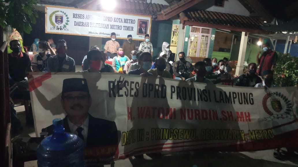 BANDARLAMPUNG (PeNa)– Anggota Komisi I DPRD Lampung, Watoni Noerdin saat melakukan reses di kota Metro, banjir aspirasi soal jalan milik provinsi yang kondisi rusak parah.