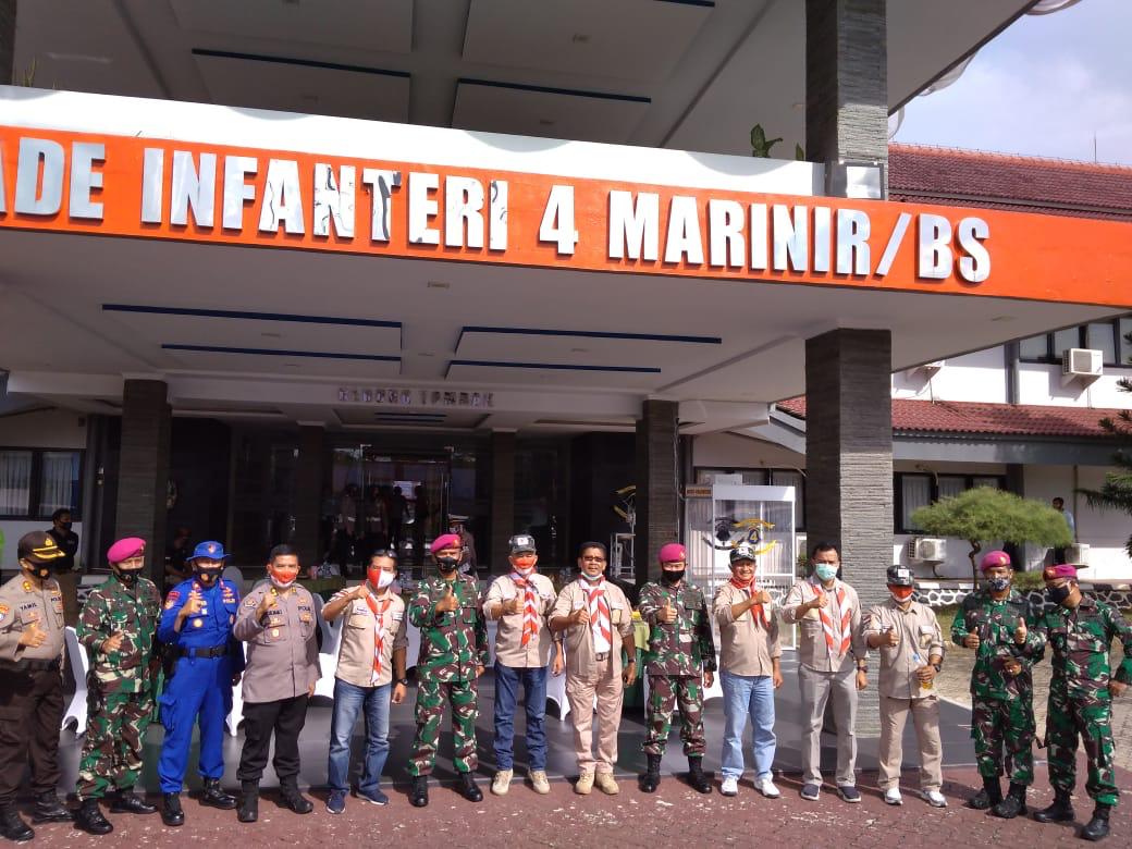 PESAWARAN-(PeNa), Menyambut Hari Ulang Tahun Republik Indonesia (HUT RI) Ke-75, TNI-Polri dan Komunitas Otomotif gelar Bhakti Sosial Kebangsaan di Mako Brigif 4 Marinir/BS, Piabung, Kecamatan Padang Cermin, Sabtu (15/08/2020).