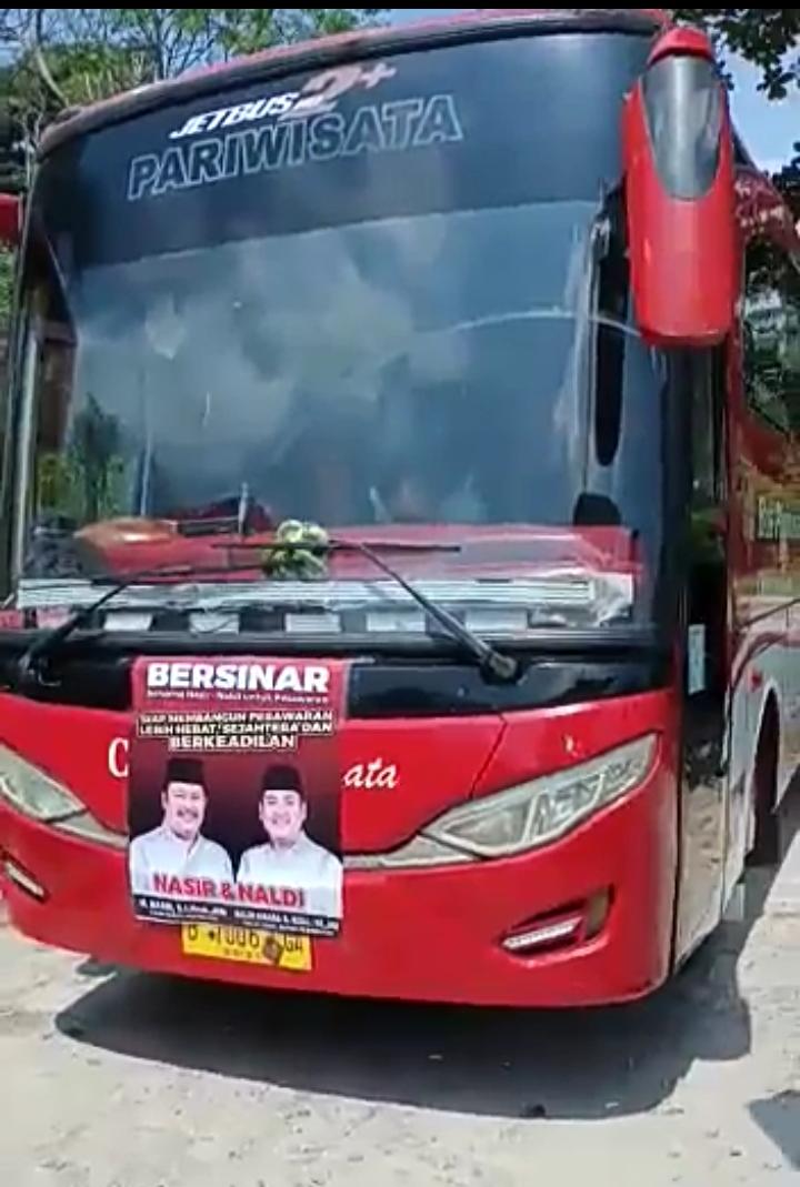 Informasi yang dihimpun, meski sudah diberikan peringatan tertulis oleh Bawaslu namun paslon tersebut masih membawa massa menuju ke tempat wisata yang ada diluar kota Kabupaten Pesawaran dengan menggunakan Bus.
