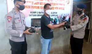 BANDARLAMPUNG-(PeNa), Situasi pademi Covid-19 menuju situasi new normal, personel Kompi 2 Batalyon A Pelopor Satuan Brimob Polda Lampung, melakukan penyuluhan cara berternak ayam dan memberi bantuan bibit ayam kampung kepada warga Desa Merak Batin, Kecamatan Natar, Lampung Selatan, Kamis (11/06/2020).