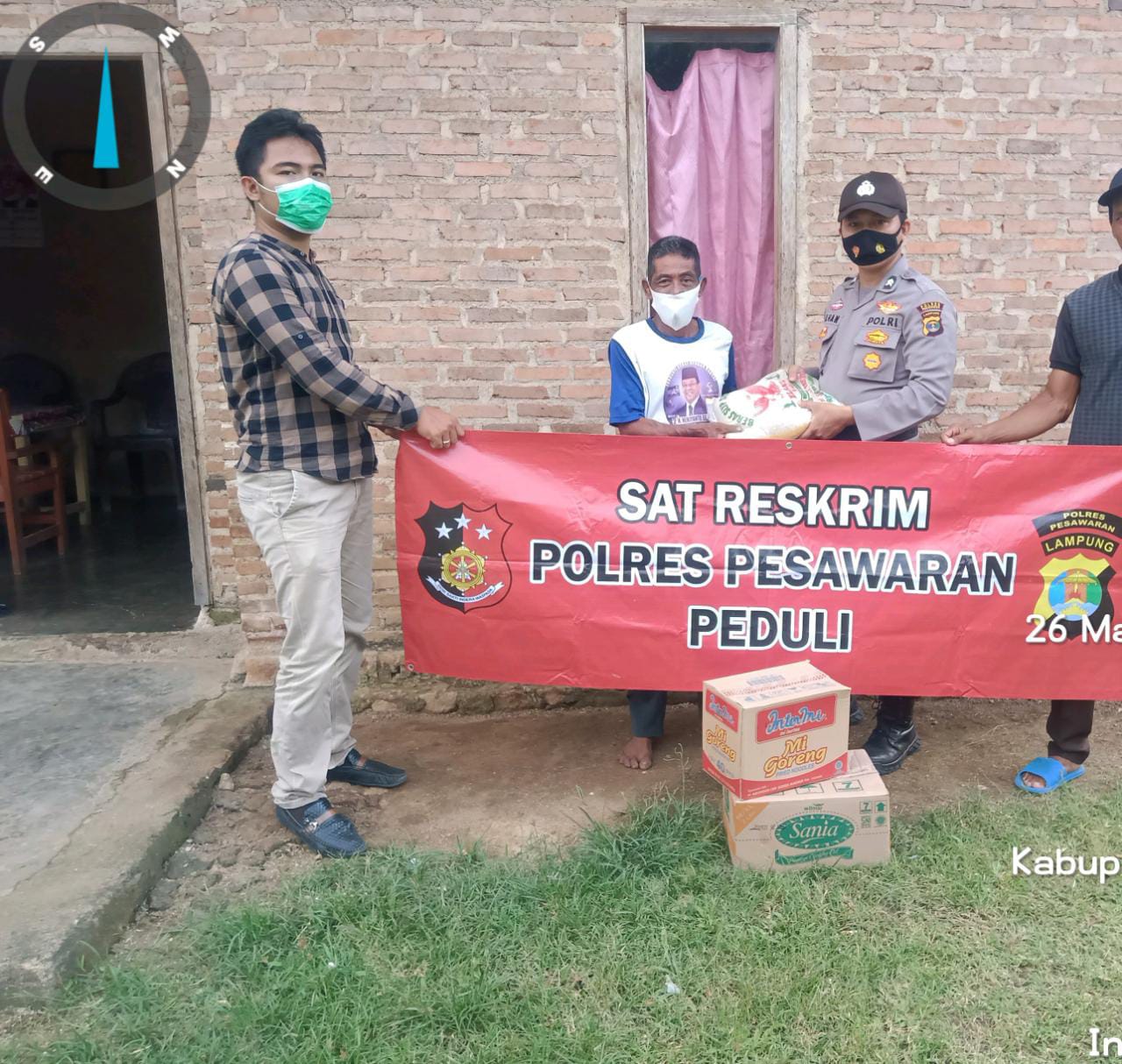 Kapolres Pesawaran AKBP Vero Aria Radmantyo melalui Kasat Reskrim AKP Eko Rendi Oktama mengatakan bahwa giat fungsi Sat Reskrim tersebut telah masif dilaksanakan guna membantu warga yang terdampak pandemi corona.
