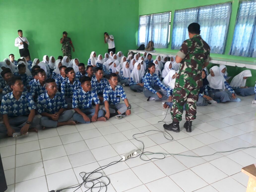 PESAWARAN-(PeNa), Tidak seperti hari biasanya, siswa-siswi di SMA Negeri 1 Desa Sidomulyo Kecamatan Negeri Katon di ajar oleh guru yang berseragam loreng. Materi yang disampaikan hanya soal wawasan kebangsaan (wasbang) oleh Kapten Arh Kuntoku SN di Aula gedung sekolahan tersebut, Kamis (26/7).