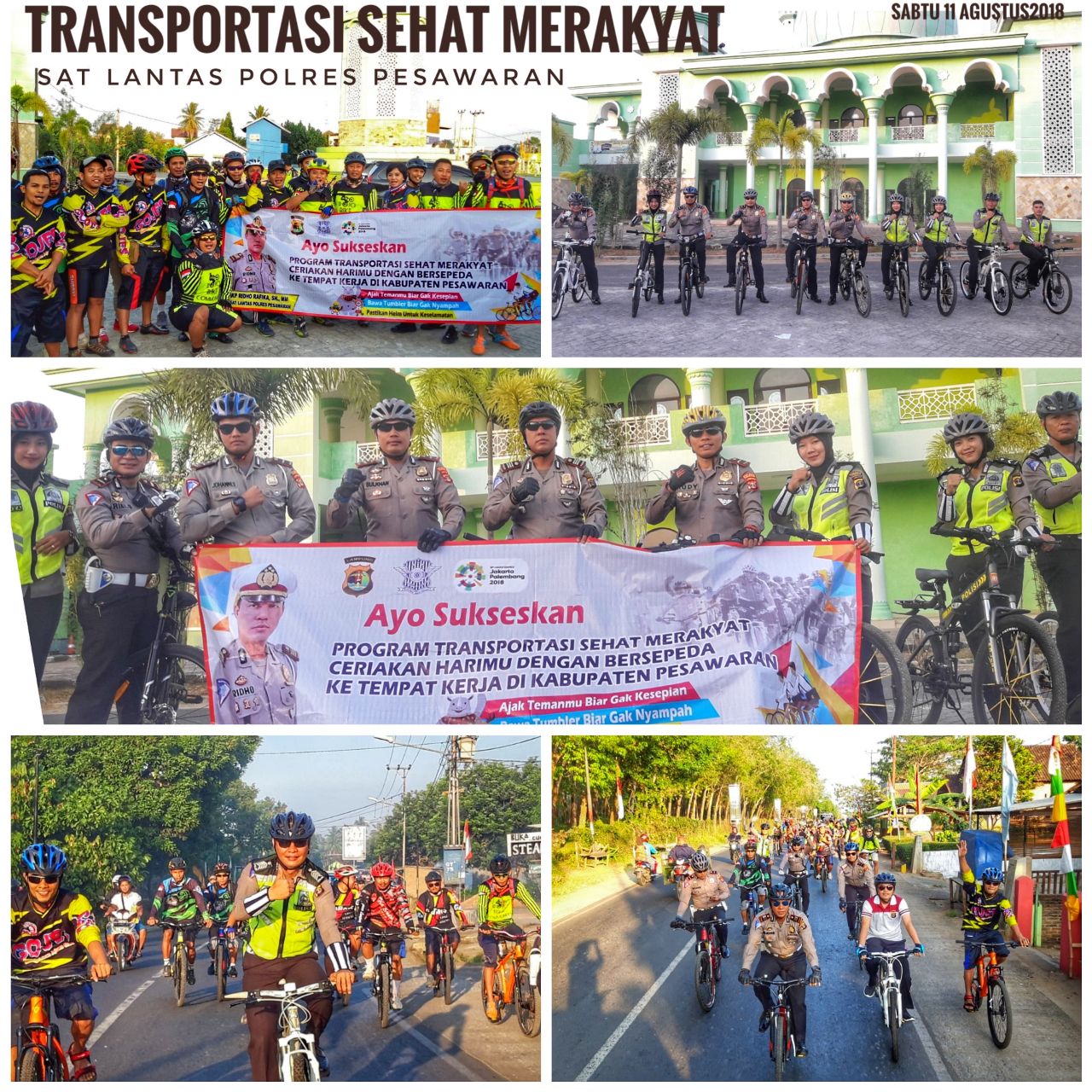 PESAWARAN-(PeNa), Padatnya lalulintas jalan raya dengan kendaraan berbahan bakar yang mengeluarkan gas emisi, Satuan Lalulintas Polres Pesawaran galakan transportasi sehat menggunakan sepeda ontel. Kegiatan tersebut dilaksanakan di Lapangan Islamic Centre Kabupaten Pesawaran, Sabtu (11/8) pagi.