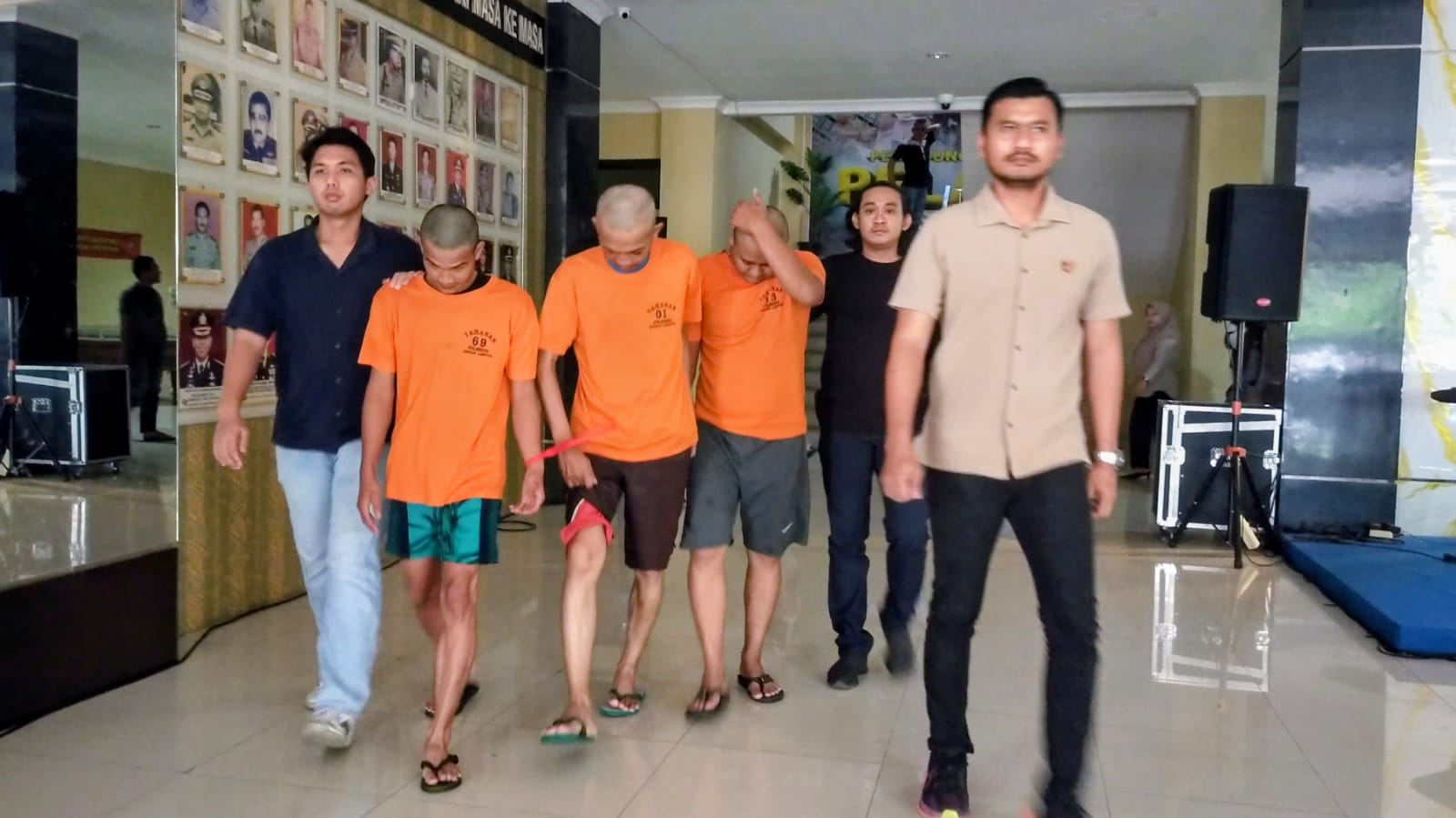 Ketiga pelaku yakni Wawan Kurnia Jaya (29), Faried Ampasya (47), dan Danu Ragil Setiawan (22). Mereka dibekuk Unit Jatanras Satreskrim Polresta Bandar Lampung saat masih bertugas menjaga keamanan rumah sakit, Kamis (27/11).