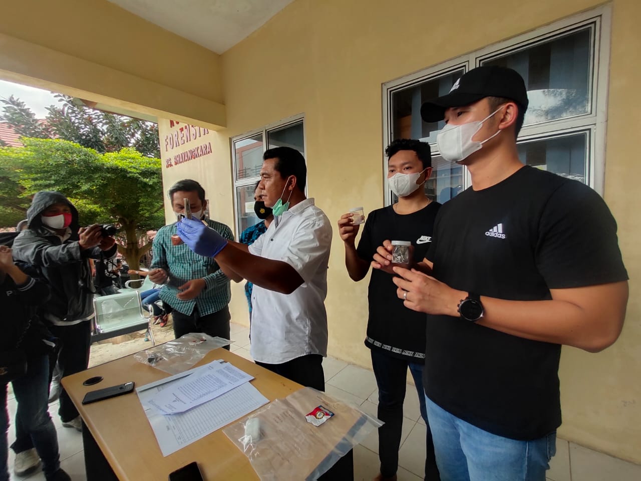 Hasil pemeriksaan sementara, tambahnya, salah seorang dari dua rekan Alamsyah yang diamankan, tes urinenya positif mengandung zat narkoba.