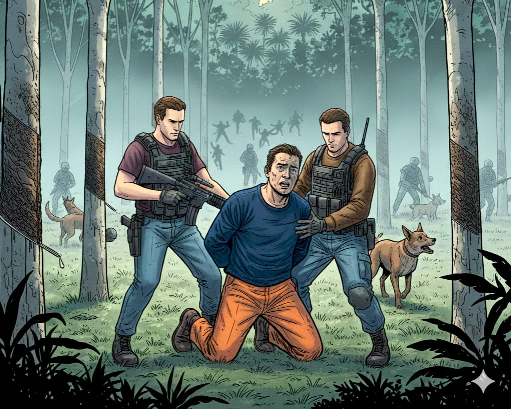 Operasi dipimpin Kasatresnarkoba Iptu Prayugo Widodo. Petugas bersama Kepala Kampung Negeri Baru menyisir area gelap perkebunan hingga akhirnya menemukan seorang pria bersembunyi di balik rimbun semak.