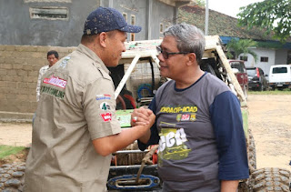 | Kompak, Bupati dan Wakil, Mustafa-Loekman memperlihatkan kekompakan dengan salam komando usai membuka kompetisi off road beberapa waktu lalu. Kedunya memiliki hobi yang sama. ist |