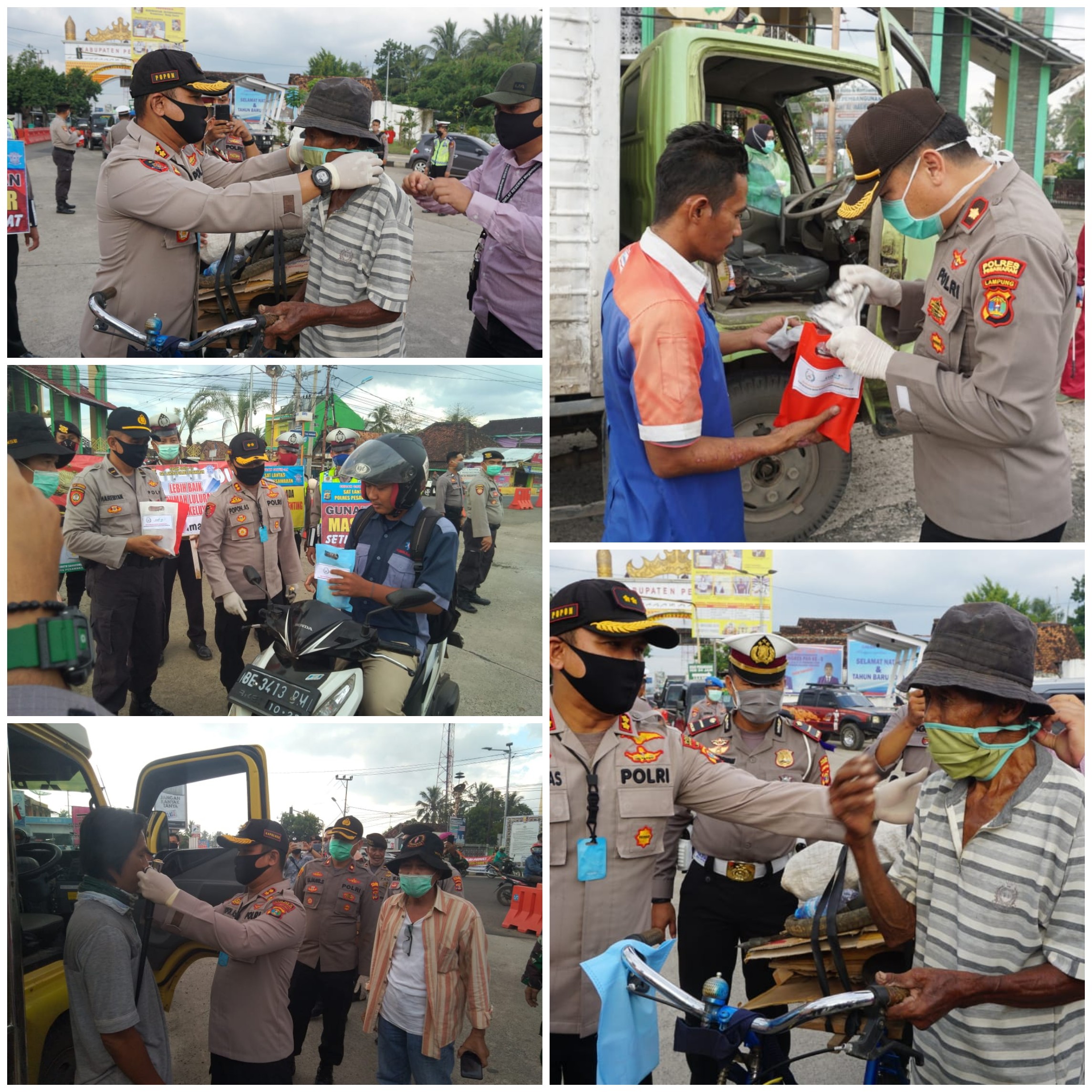 Dalam melakukan kegiatan, AKBP Popon Ardianto Sunggoro bersama jajaran juga memasangkan masker kepada warga yang melintas dan memberikan bingkisan. Tegas dikatakan, bahwa virus covid-19 dapat dicegah dan disembuhkan.