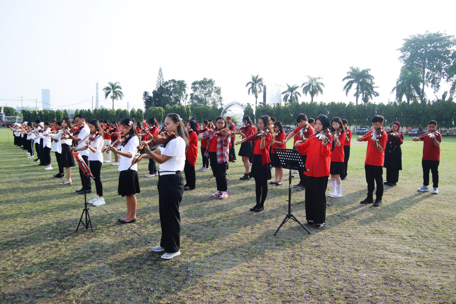 BANDARLAMPUNG – Pemerintah Provinsi Lampung berkolaborasi dengan Komunitas String Ansemble Lampung (KSAL) melakukan pengambilan gambar “Dawai Kemerdekaan”, di Lapangan Korpri Komplek Kantor Gubernur, Minggu (6/8/2023).