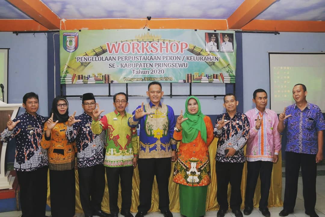 PRINGSEWU-(PeNa), Sebanyak 131 pengelola perpustakaan pekon dan kelurahan dari sembilan kecamatan se Kabupaten Pringsewu mengikuti Workshop Pengelolaan Perpustakaan Pekon/Kelurahan Tahun 2020 di Aula STMIK Pringsewu, Kamis (30/01/2020),