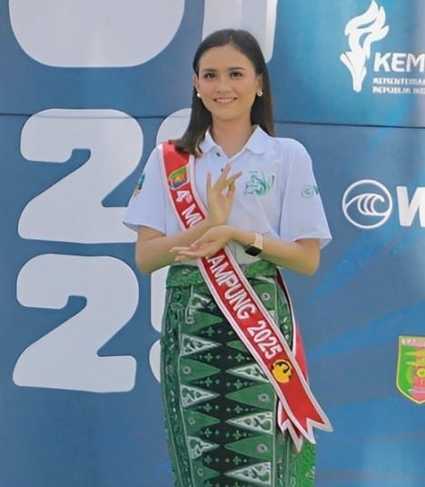 Kain tersebut dikenakan dalam prosesi pembukaan oleh sejumlah penari dan tokoh adat, menampilkan kekayaan tradisi Lampung yang dikemas dalam atraksi budaya sekura betik yang sarat makna.