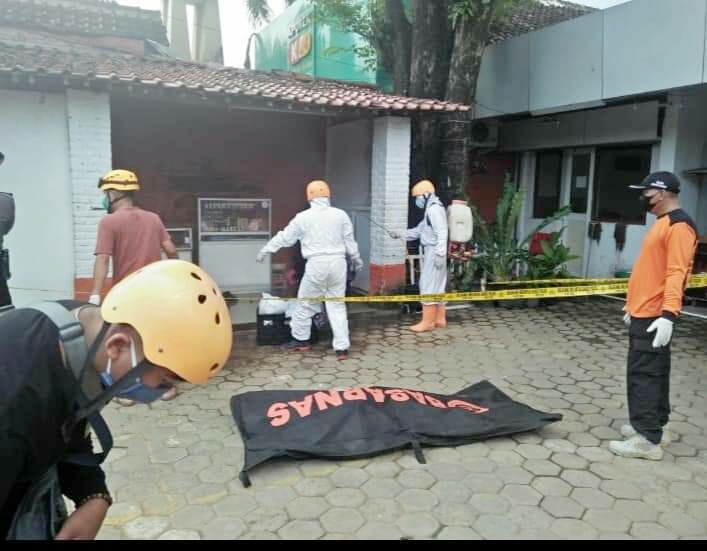 Dalam Evakuasi Korban Polsek Gamping di bantu Tim Kesehatan Puskesmas Gamping I, Inafis Polres Sleman Koramil Gamping, PMI dan TRC Gamping.
