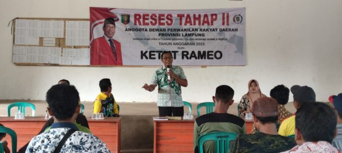 TULANG BAWANG – Anggota DPRD Provinsi Lampung Ketut Rameo melaksanakan kegiatan reses di 12 titik yang tersebar di daerah pemilihan nya mulai dari Kabupaten Tulang Bawang, Tulang Bawang Barat dan Mesuji. Pada kegiatan reses tahap 2 yang diselenggarakan sejak tanggal 2 hingga 9 Juni 2023.