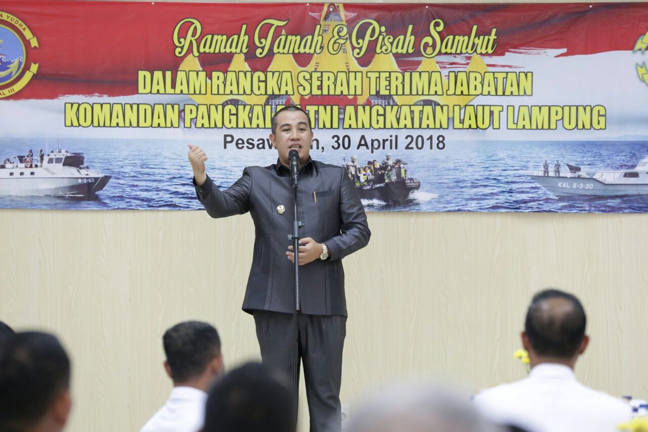 Dalam sambutannya, Bupati Pesawaran Dendi Ramadhona mengatakan bahwa capaian pembangunan tentunya tidak terlepas dari kerja keras Danlanal Lampung sebelumnya. “Dimana selama ini Kabupaten Pesawaran terasa aman, nyaman serta rasa diayomi pihak TNI khususnya Lanal lampung,” kata dia.