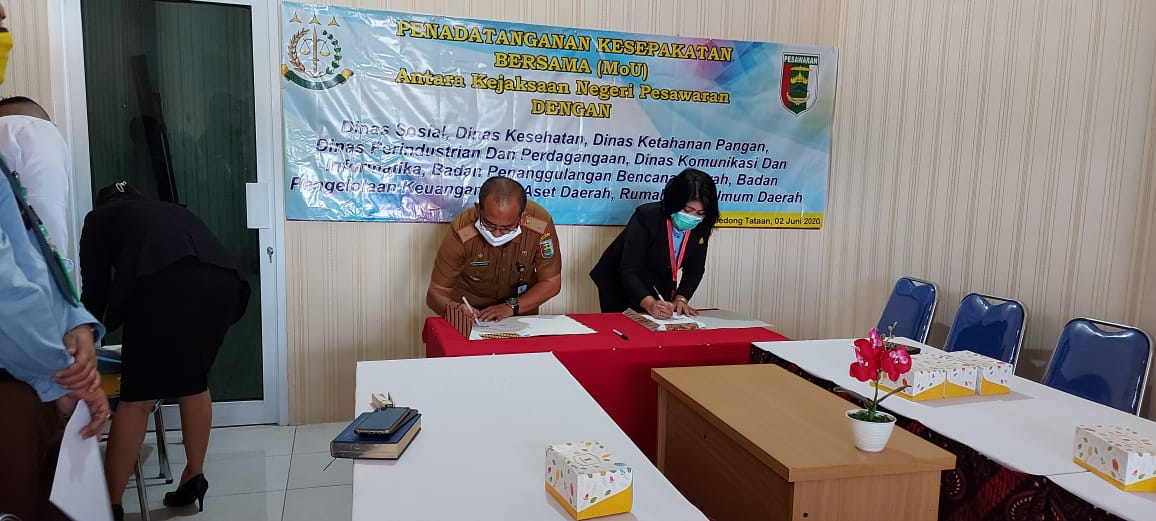 PESAWARAN-(PeNa), Soal penanganan Perdata dan Tata Usaha Negara (Datun), delapan Organisasi Perangkat Daerah (OPD) Bumi Andan Jejama lakukan Memory of Understanding (MoU) dengan Kejaksaan Negeri (Kejari) Pesawaran, Jum’at (05/06/2020).