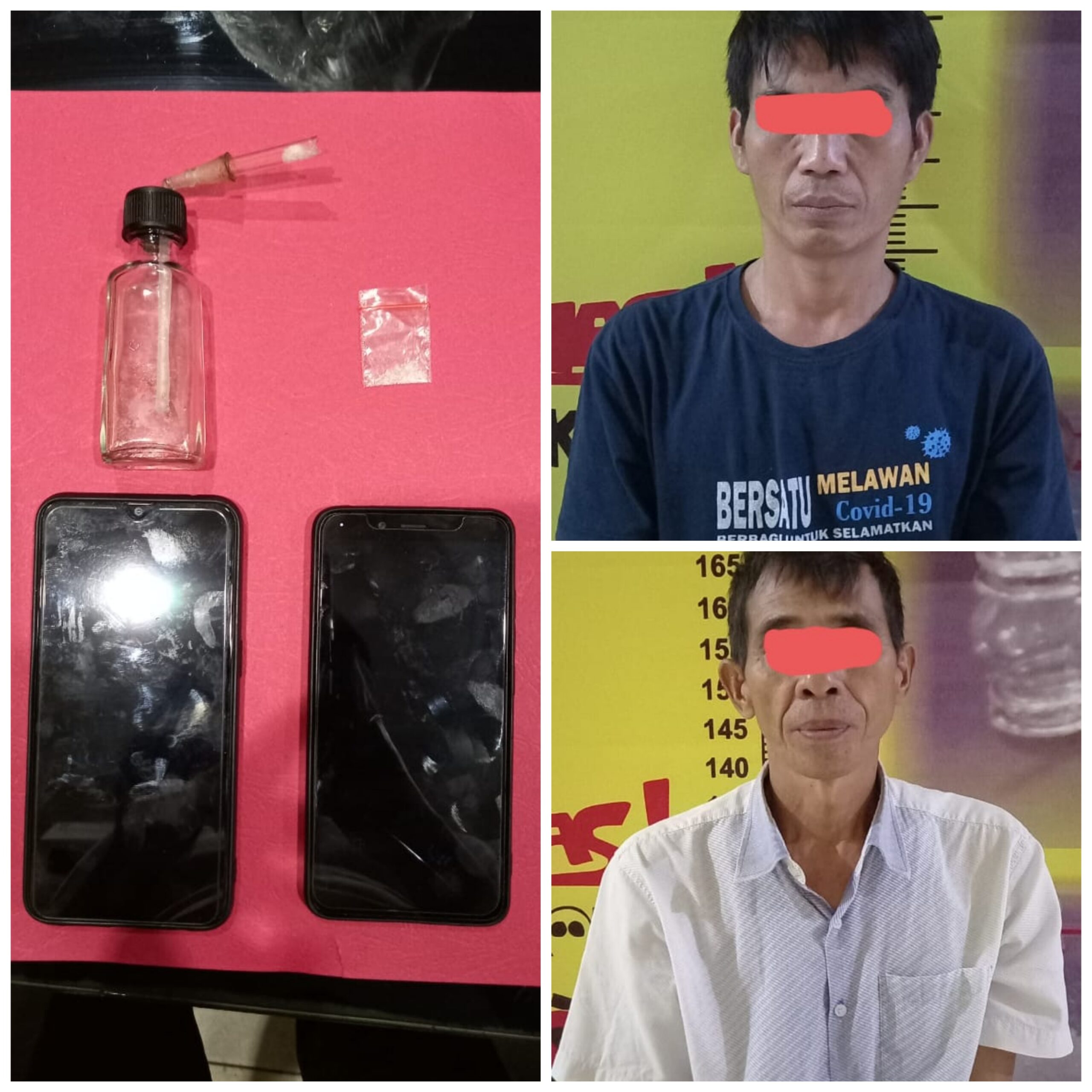 “Petugas mengamankan dua pelaku berinisial Mr (41) dan Di (50) warga Desa Kota Jawa Kecamatan Way Khilau dan barang bukti berupa 1 (satu) bungkus plastik klip bening berisi kristal diduga narkotika jenis sabu seberat 0,12 gram, seperangkat alat hisap sabu (bong), 1 (satu) buah HP oppo warna merah dan 1 (satu) buah HP redmi warna hitam,” jelas dia.