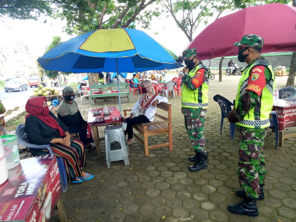 PESAWARAN-(PeNa), Tentara Koramil 421-02 Gedong Tataan berikan himbauan tentang protokol kesehatan kepada warga yang berada di Taman Jejama Sidototo dan Pasar Sukaraja Kecamatan Gedong Tataan, Jum’at (21/08/2020).