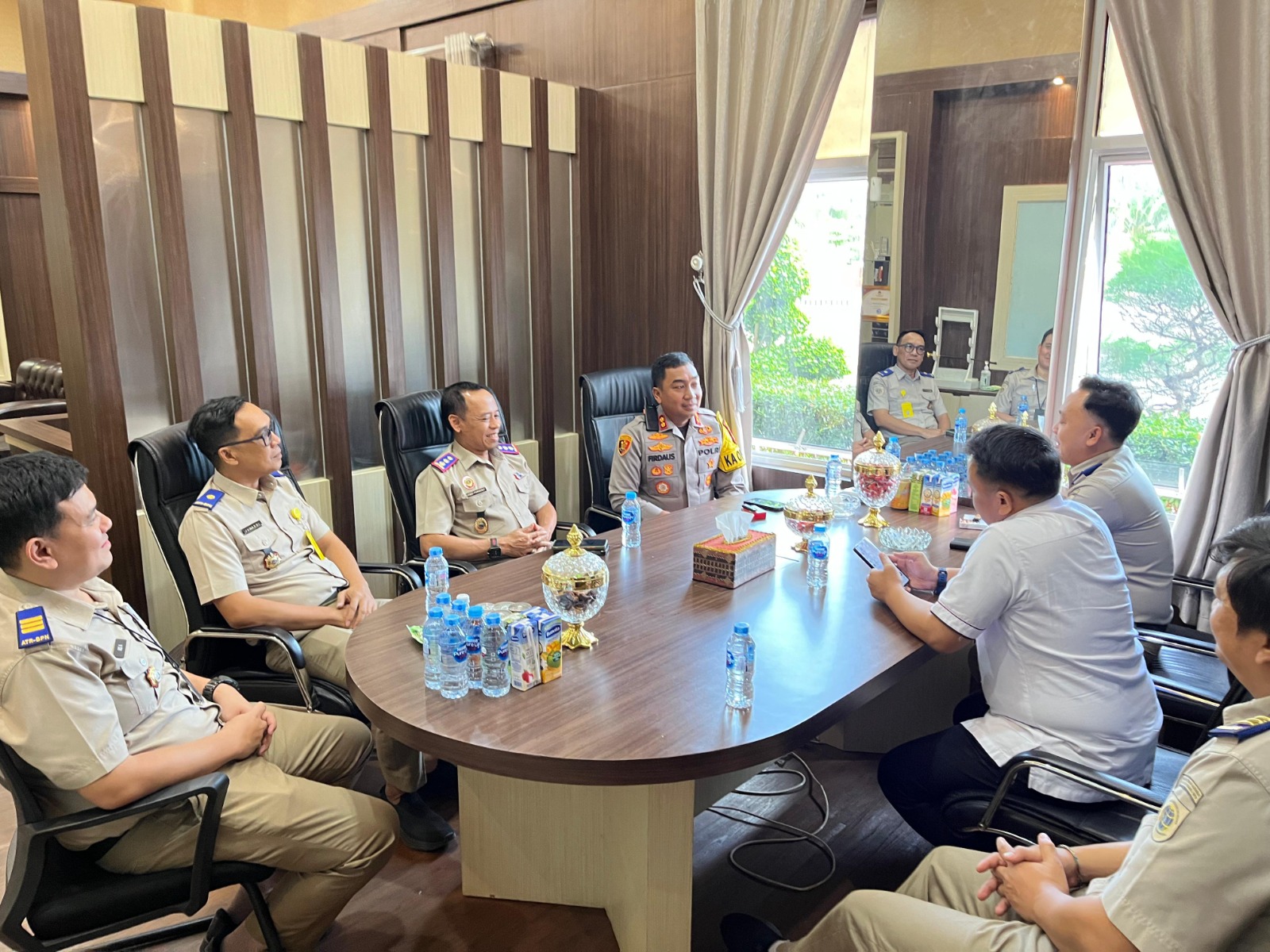 M E S U J I -(PeNa), Koordinasi soal pertanahan dan perkuat sinergi institusi, Kepala Kantor Agraria dan Tata Ruang/Badan Pertanahan Nasional (Kakan ATR/BPN) Endi Purnomo bersama sejumlah jajaran mendatangi Polres Mesuji Polda Lampung,Selasa (05/08/2025).