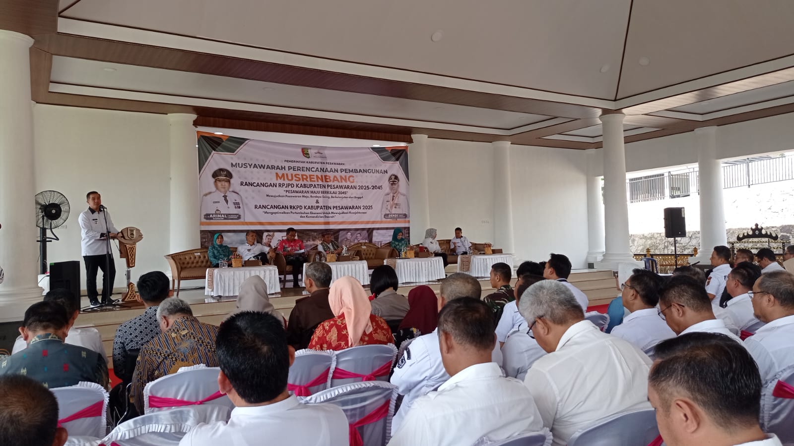 P E S A W A R A N – (PeNa), Bupati Pesawaran Dendi Ramadhona melibatkan banyak pihak dalam membahas rancangan Rencana Pembangunan Jangka Panjang Daerah (RPJPD) Kabupaten Pesawaran 2025-2045, dan Rencana Kerja Perangkat Daerah (RKPD) Kabupaten Pesawaran 2025. Kegiatan tersebut dilangsungkan di Aula Lamban Agung Rumah Dinas Bupati setempat,Kamis (07/03/2024).