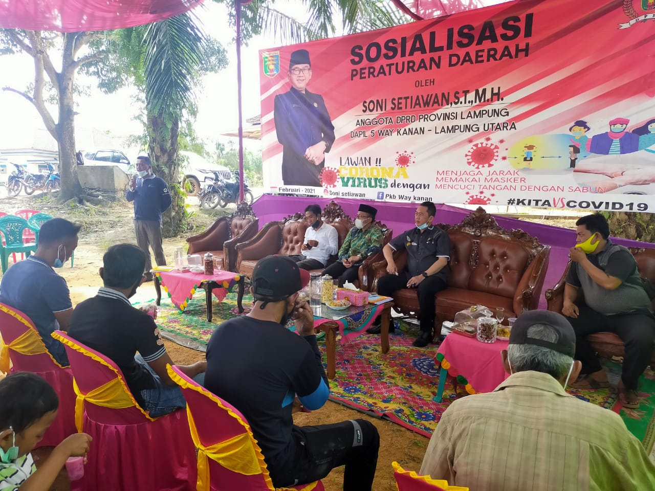 WAYKANAN(PeNa) – Bertempat di Kampung Umpu Bhakti, Kecamatan Blambangan Umpu, Kabupaten Way Kanan. Anggota DPRD Provinsi Lampung, Soni Setiawan, melangsungkan kegiatan rutin bulanan berupa Sosialisasi Peraturan Daerah (Sosperda), Selasa (26/01/2021).