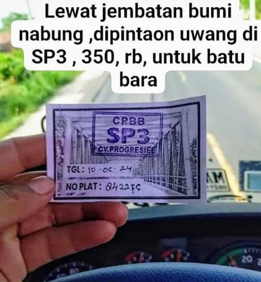 “Untuk membayar kupon melintasi jembatan di SP3, dikenakan biaya 350. Saya tidak tahu untuk selanjutnya. Untuk pagi ini, dipinta bayaran 350. Itulah informasinya,” katanya.