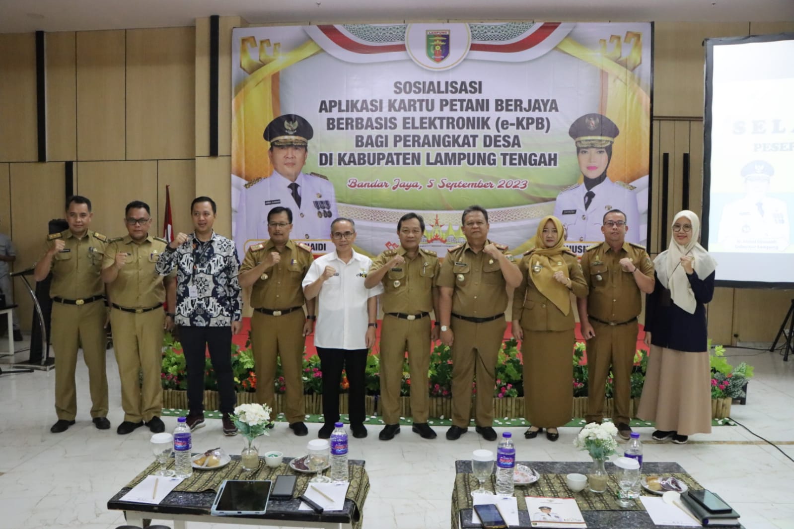LAMPUNG TENGAH – Gubernur Lampung diwakili oleh Asisten Perekonomian dan Pembangunan Kusnardi, membuka kegiatan sosialisasi penggunaan aplikasi Kartu Petani Berjaya Berbasis Elektronik (e-KPB) kepada perangkat desa di Kabupaten Lampung Tengah, bertempat di Hotel BBC Bandar Jaya, Selasa (05/09/2023).