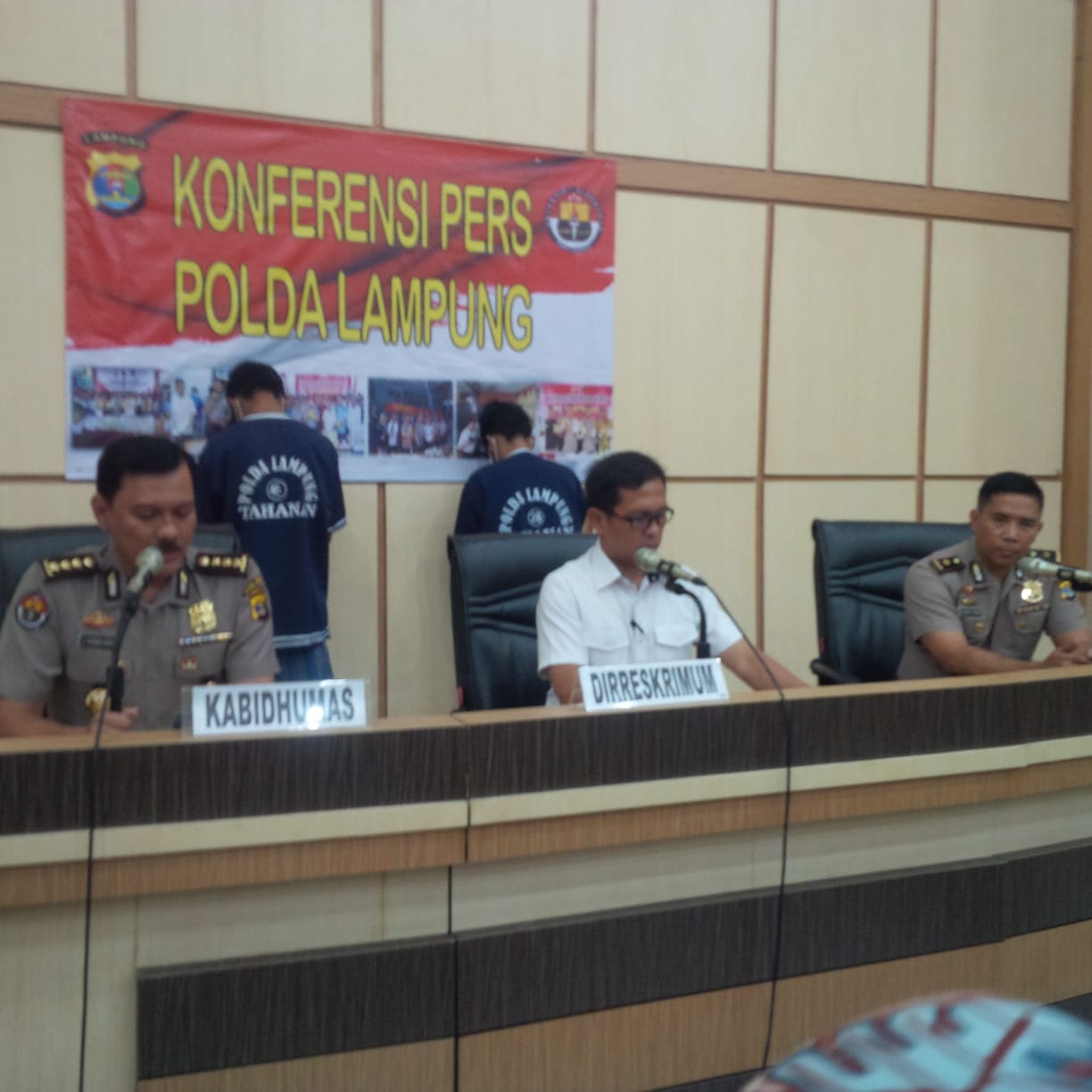 Direktur Reserse Kriminal Umum Polda Lampung, Kombes Pol. M Barly R didampingi Kabid Humas Polda Lampung, Kombes Pol. Zahwani Pandra Arsyad dan Kasubid Penmas Polda Lampung, Kompol. Zulman Topani membenarkan, pihaknya telah mengamankan lima tersangka ditiga tempat berbeda.