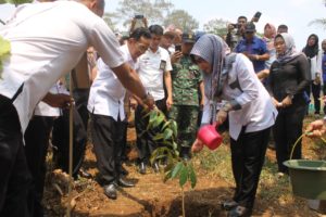 TANGGAMUS-(PeNa), Bupati Tanggamus Hj. Dewi Handajani, menghadiri Kegiatan Penanaman Bibit Buah Alpokat dan Durian yang dipusatkan di Lapangan Sepak Bola Pekon Kemuning, Kecamatan Pulau Panggung, Rabu (25/09/2019).