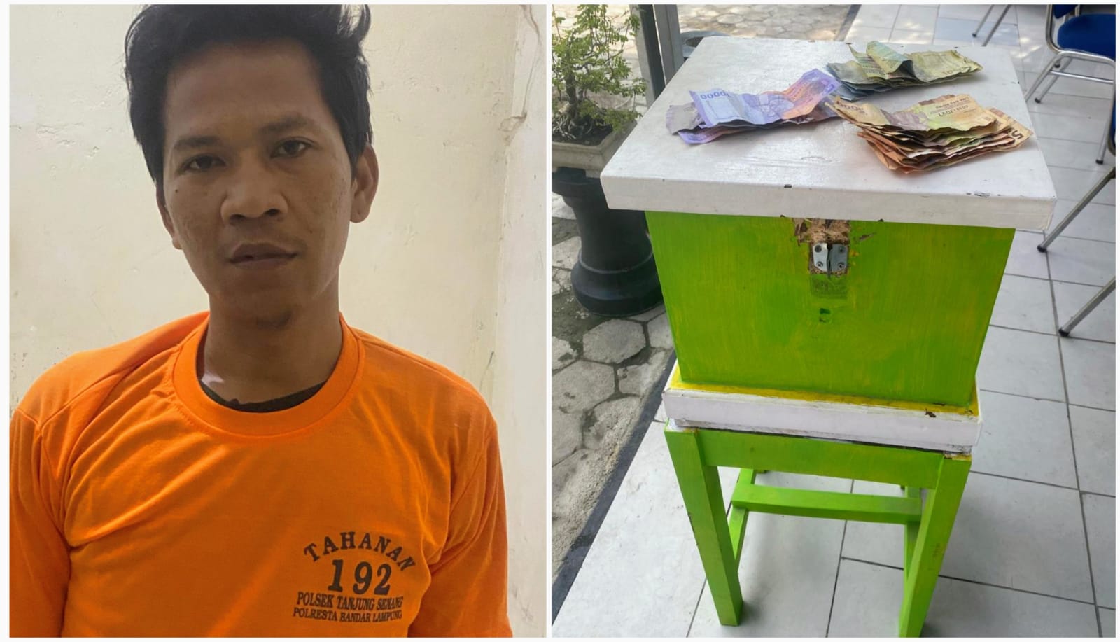 BANDARLAMPUNG – (PeNa), Aksi pencurian kotak amal masjid kembali terjadi, kali ini dilakukan oleh seorang tuna wisma, Sudirman (36), warga Lampung Selatan.