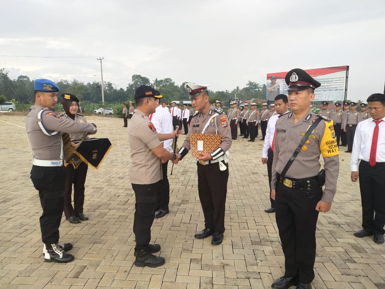 Untuk diketahui, Peserta Upacara dalam kegiatan tersebut terdiri dari Satu Pleton Perwira Gabungan Polres Pesawaran, Satu Pleton Gabungan Polsek Jajaran Polres Pesawaran, Satu Pleton gabungan Personel Sat Intelkam, Sat Reskrim, dan Sat Res Narkoba Polres Pesawaran dan Satu Pleton Personel Sat Lantas Polres Pesawaran. PeNa-spt.