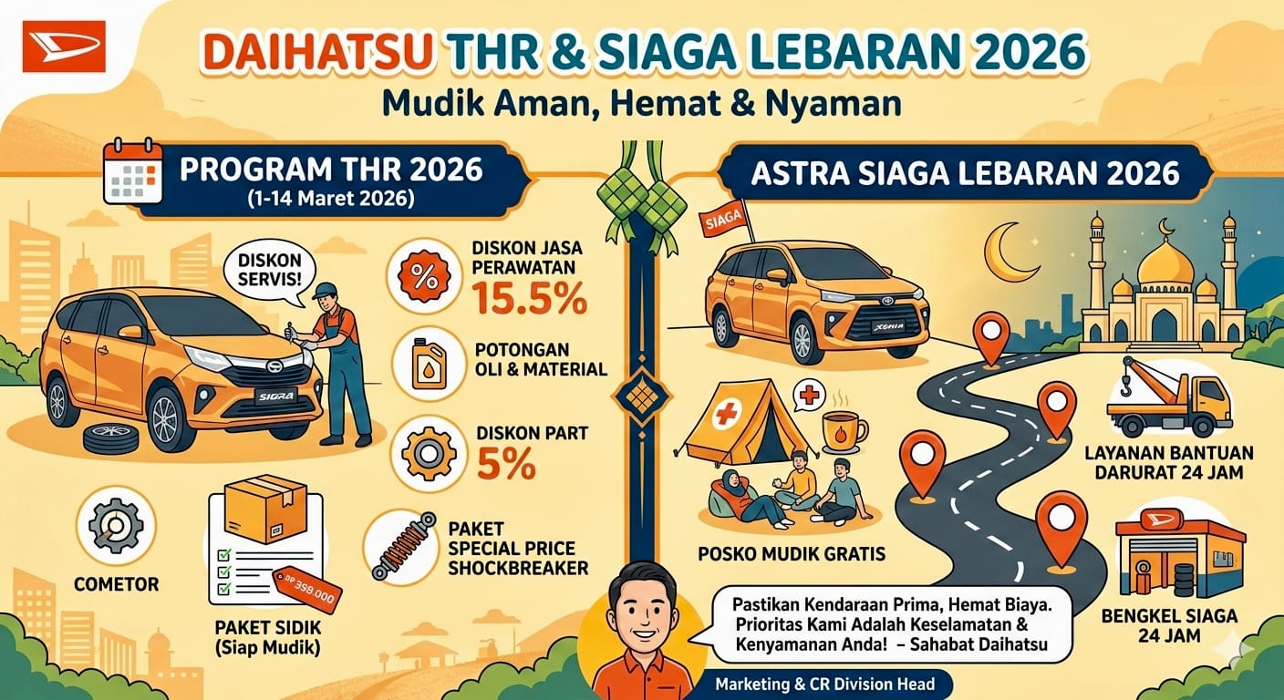 Dengan kombinasi promo servis dan dukungan posko siaga di jalur mudik, Daihatsu berharap perjalanan Lebaran 2026 pelanggan berjalan lebih aman, nyaman, dan bebas khawatir.