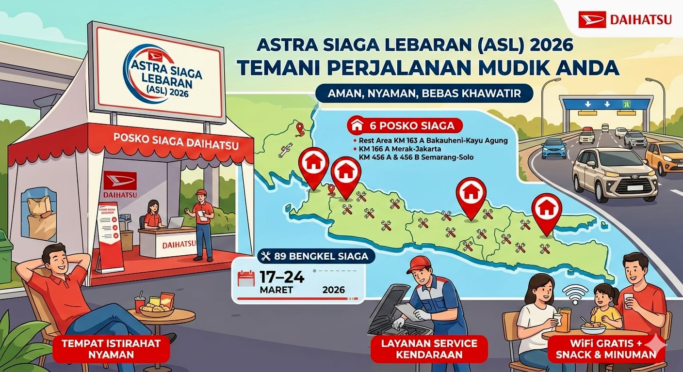 Tak berhenti pada promo servis, Daihatsu juga menghadirkan Astra Siaga Lebaran (ASL) 2026 yang digelar pada 17–24 Maret 2026. Dalam periode ini, sebanyak 6 Posko Siaga dan 89 Bengkel Siaga disiapkan untuk menemani perjalanan mudik Sahabat Daihatsu.