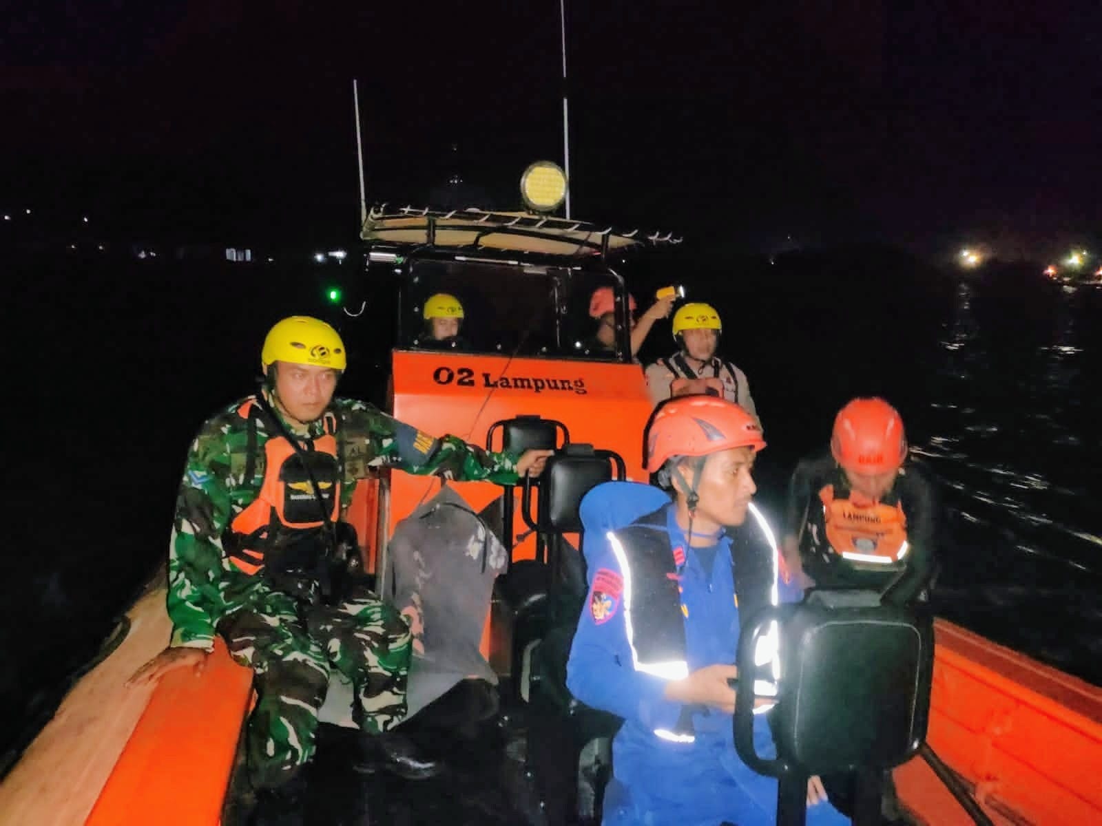 Tiba di dermaga Muara Piluk, tim SAR gabungan yang terdiri dari Direktorat Polair Polda Lampung, Polair Polres Lampung Selatan, dan Pos AL Bakauheni langsung melakukan pencarian dengan menggunakan RIB 02 Basarnas Lampung.