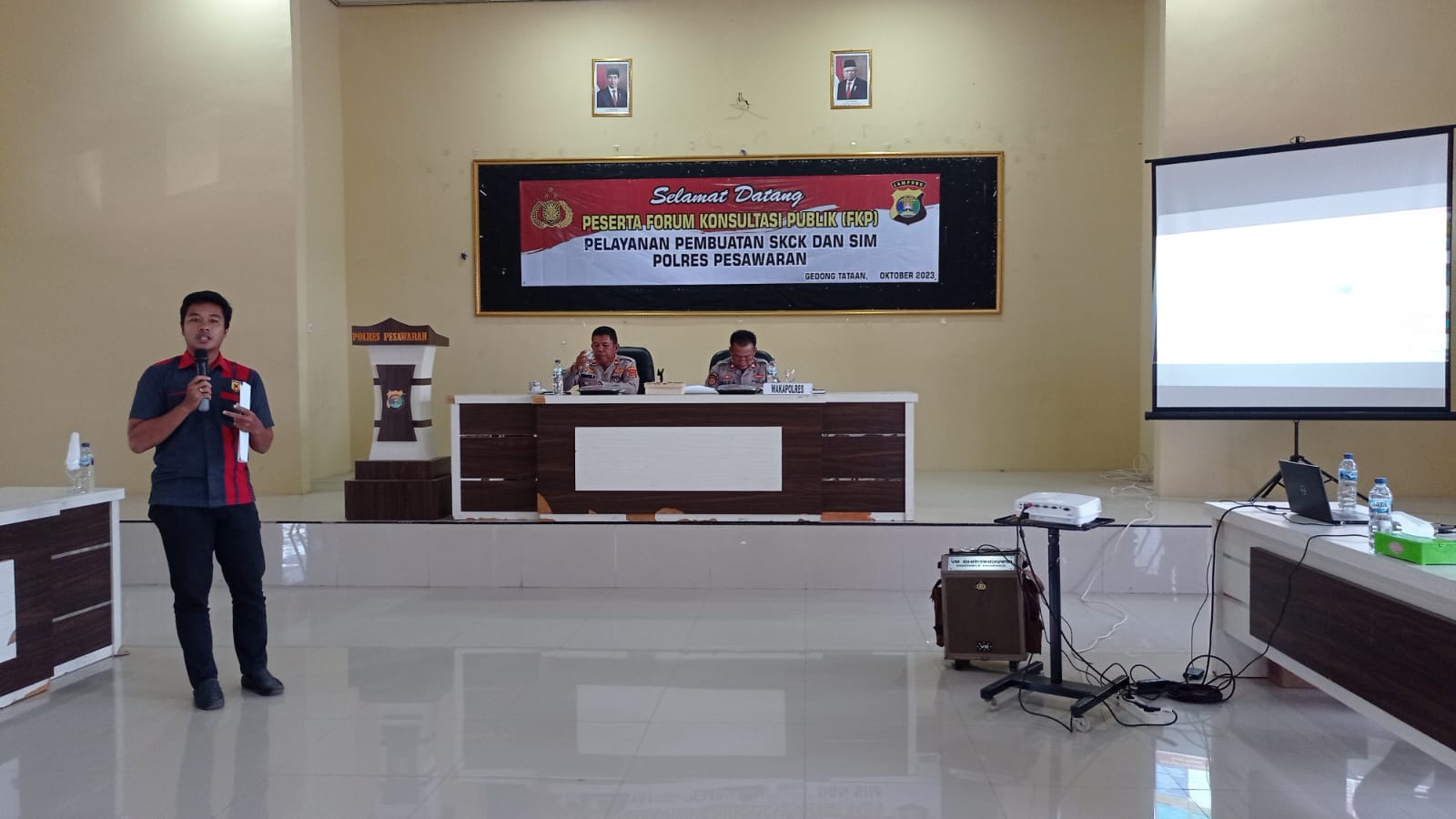 P E S A W A R A N – (PeNa), Guna meningkatkan pelayanan publik, Polres Pesawaran Polda Lampung menggelar diskusi yang dikemas dengan Forum Konsultasi Publik (FKP) Pelayanan Pembuatan SKCK dan SIM di Aula Pamor Persada Mapolres Pesawaran, Selasa (10/10/2023).