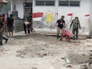 Relawan yang terdiri dari tentara, polisi, tukang batu, dan polisi pamong praja penuh dengan semangat kebersamaan dalam bekerja.”Mereka nampak semangat dan ikhlas dalam bekerja, ini yang menjadi warga sangat bersyukur serta bangga kepada mereka semua, ” tegas dia. PeNa-spt.