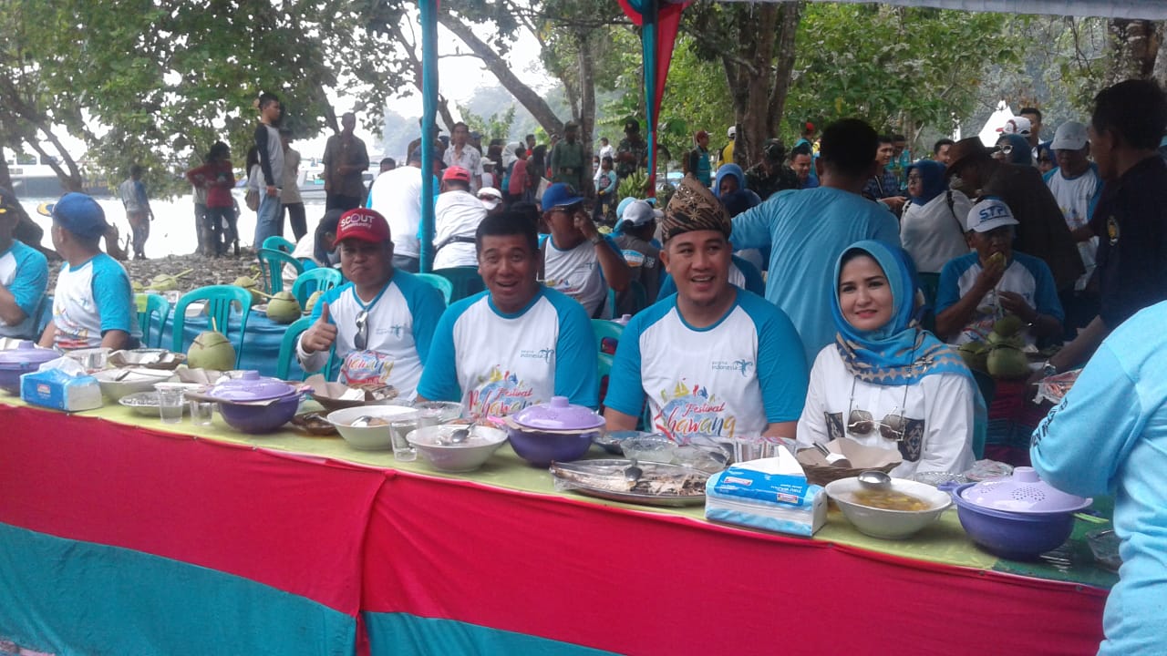 PESAWARAN-(PeNa), Bupati Dendi Ramadhona bersama Wakil Bupati Eriawan pimpin puluhan kapal dan perahu berparade pada Festival Pahawang Ekotourism 2018 di perairan Ketapang, Sabtu (27/10).