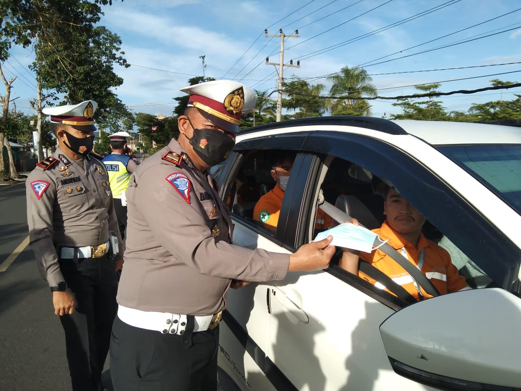 “kami tidak akan segan melakukan hukuman ringan kepada warga maupun pengguna jalan yang tidak menggunakan masker, dengan meminta menyanyikan lagu kebangsaan Indonesia Raya,”Ujar Kasat.