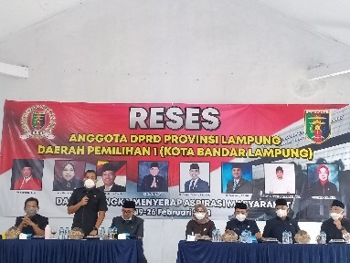 BANDARLAMOUNG (PeNa) – Bertujuan untuk menyerap aspirasi masyarakat, tujuh Anggota DPRD Lampung Dapil Bandarlampung gelar Reses bertempat di Kampung Baru Raya, Kecamatan Labuan Ratu. Senin (22/02).