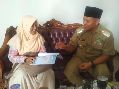 caption: Bupati Lampung Tengah DR. Ir. Mustafa menerima kunjungan dari Sinta Alvianti, mahasiswa asal Lampung Tengah bakal ke Jepang mengikuti konferensi Internasional di Universitas Hokkaido Jepang.