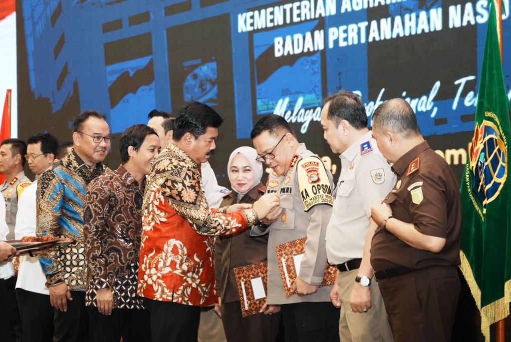 Penghargaan itu diberikan Kementerian Agraria Hadi Tjahjanto kepada Kapolda Lampung Inspektur Jenderal (Irjen) Helmy Santika di Hotel Grand Mercure, Jakarta, Rabu (8/11/2023).